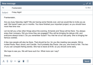 3. You met her at our last party, so she’s bringing her famous cookies.